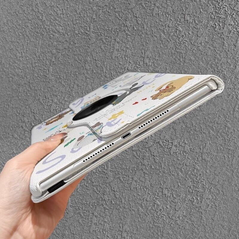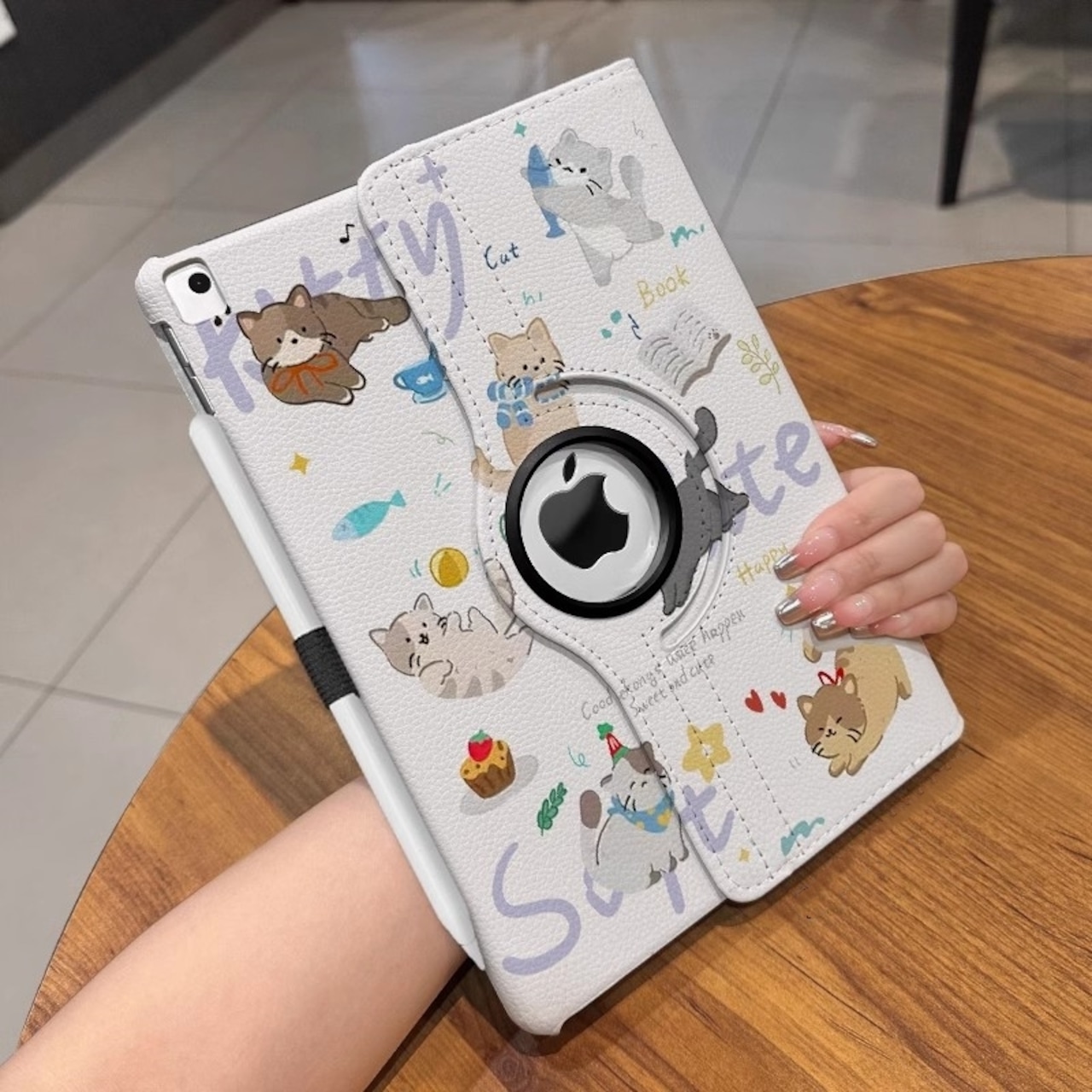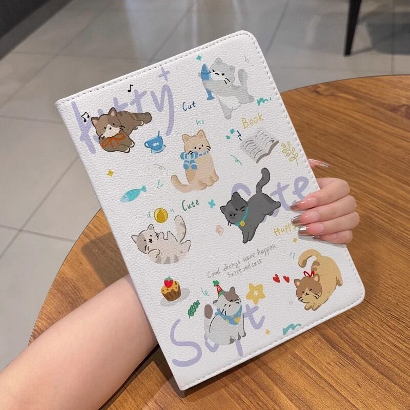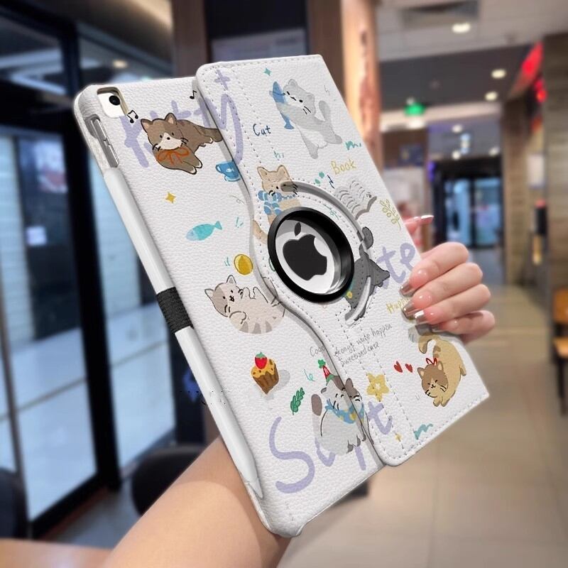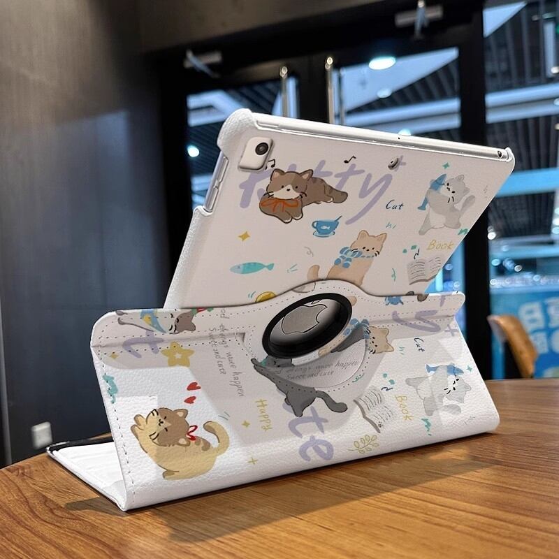 送料無料!2025年春発売 11インチ iPad Air (M3) ケース タブレットPC 保護カバー スタンド機能付き 360度回転 ペン入れ ハンドストラップ付き かわいいねこデザイン!