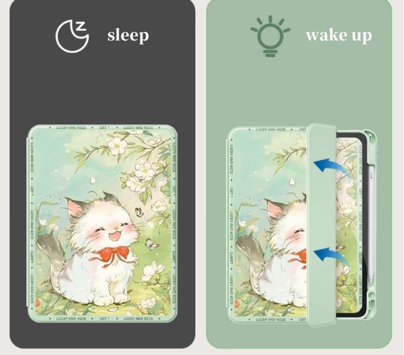 【かわいいねこのデザインが魅力の多機能ケース】このiPad Air7用ケースは、愛らしいねこのデザインが特徴で、おしゃれでありながらタブレットをしっかり守ります。見た目と機能性を兼ね備えたカバーで、大切なiPadをしっかりと保護しましょう!