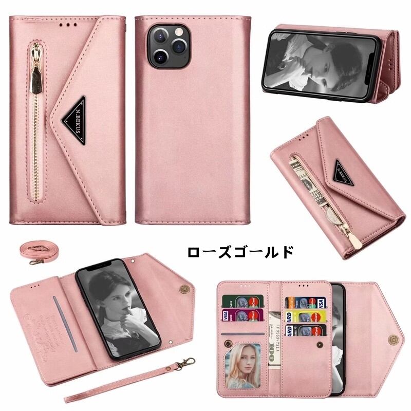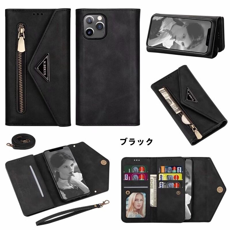 送料無料!iPhone 16e ケース スマホケース 封筒型 カード収納 三つ折り 長短チェーン付き おしゃれ!
