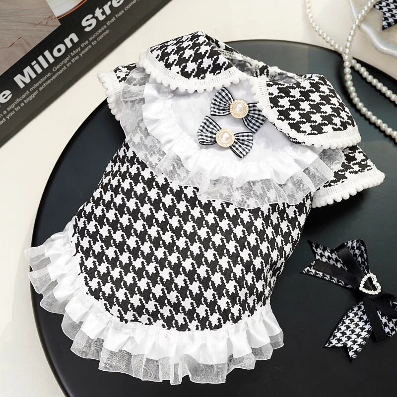 春夏にぴったりの「送料無料 犬服 猫服 タンクトップ 千鳥格子柄 リボン付き 可愛い フック付き リード対応 お散歩用 ボタン式 前開き ドッグウェア 小型犬 中型犬」をご用意しました!おしゃれな千鳥格子柄にリボンがあしらわれたこのタンクトップは、愛するペットにぴったりの一着です。通気性に優れた素材を使用しており、涼しさをキープしながらも愛犬や愛猫を可愛らしく演出します。フック付きで着脱も簡単、前開きのボタン式設計でお散歩もスムーズです。特別な瞬間をこのタンクトップで楽しみながら、愛するペットとの春夏の思い出を彩ってみませんか!