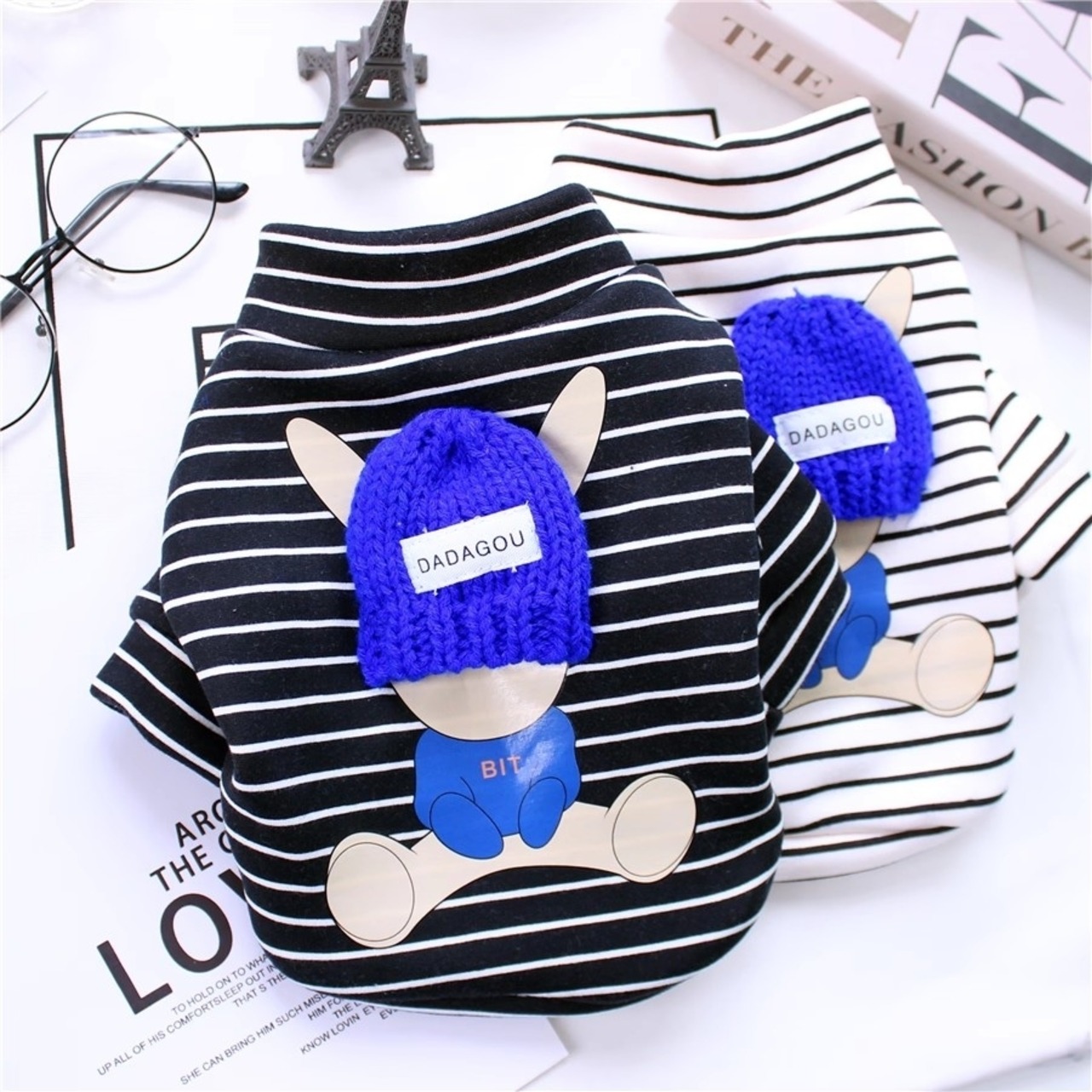 送料無料 犬服 秋冬用 ボーダーパーカー ジャケット 2足タイプ 犬猫兼用 おしゃれ 防寒 柔らか素材 小型犬向け ペット服