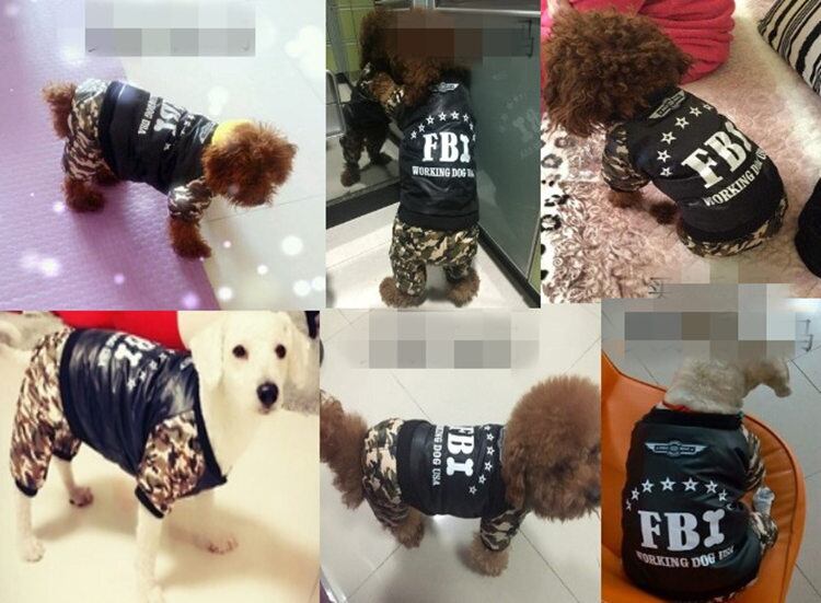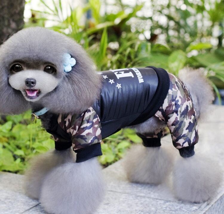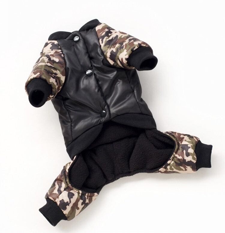 ●愛犬も捜査官気分に!カモフラージュ柄が特徴的なこのモコモコ防寒着で、寒い季節もおしゃれに楽しめます!