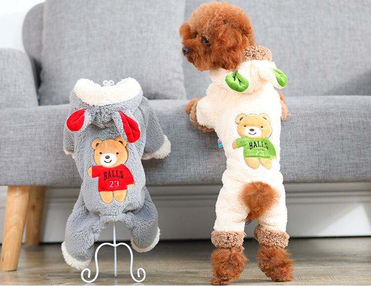 送料無料 犬服 ロンパース つなぎ カバーオール もこもこ あったか クマさんモチーフ 防寒 ふわふわ 小型犬 中型犬用 ペット服 かわいい DOG服 お散歩お出かけ 着物 ファッション小型犬 中型犬 | nextcase