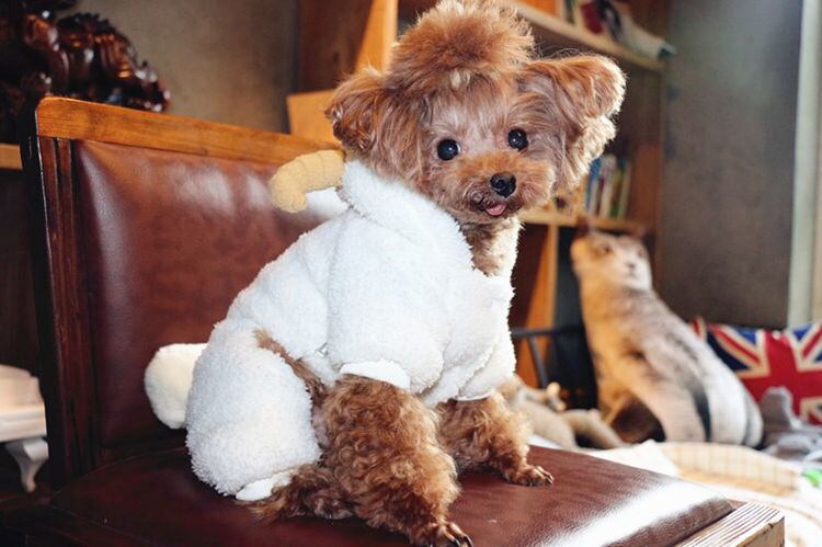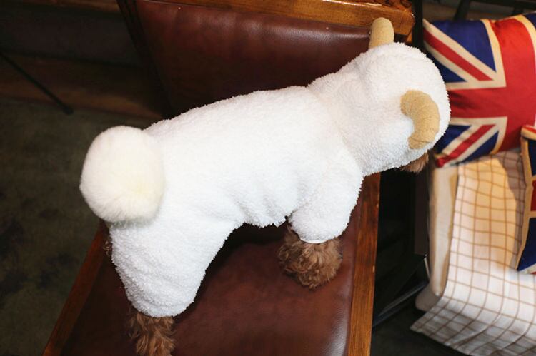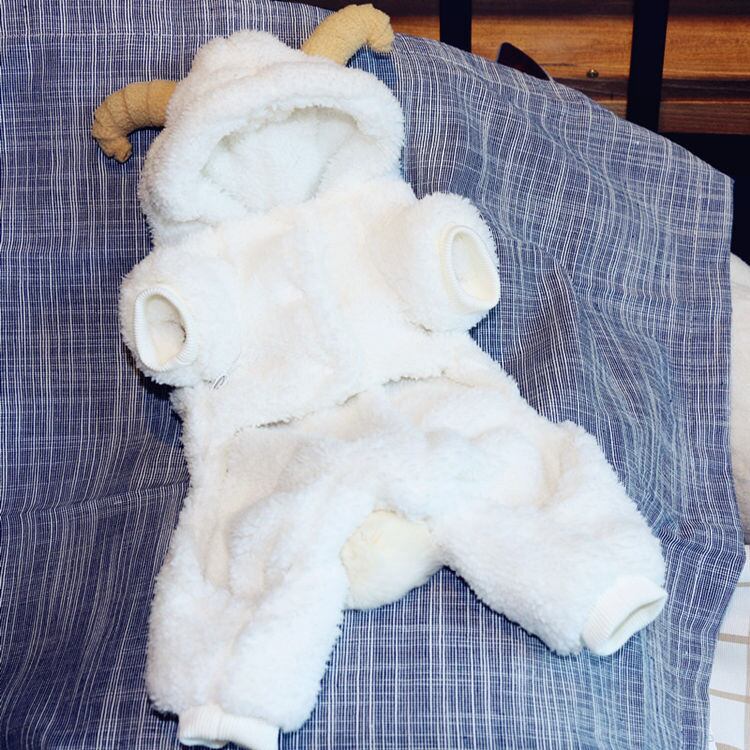 ●愛犬のために特別にデザインされた、もこもこのフード付きロンパースが新登場!キュートな山羊モチーフが愛らしさを演出し、寒い季節でも愛犬を温かく包み込む防寒設計です。ふわふわの素材は、着心地も非常に良く、愛犬をリラックスさせることができます。