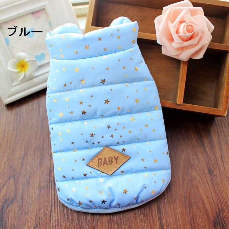 ●愛犬を寒さから守る、あったかタンクトップジャケットが登場!裏地はふわふわのボア素材を使用しており、愛犬をしっかり暖かく包み込む防寒設計です。かわいらしい星柄デザインで、愛犬の魅力を引き立てます。