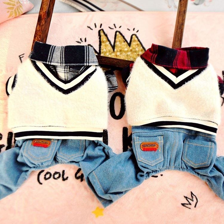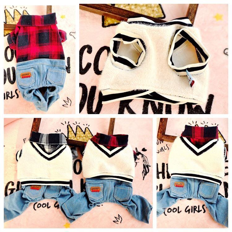●おしゃれなチェック柄デニムジャケットとパンツの2点セットが登場!この可愛いセットは、愛犬のお散歩をより楽しくしてくれるアイテムです。カジュアルでありながら、スタイリッシュなデザインが魅力で、愛犬をより一層引き立ててくれます!