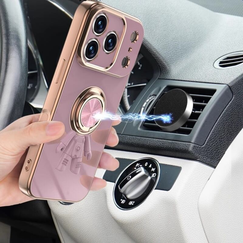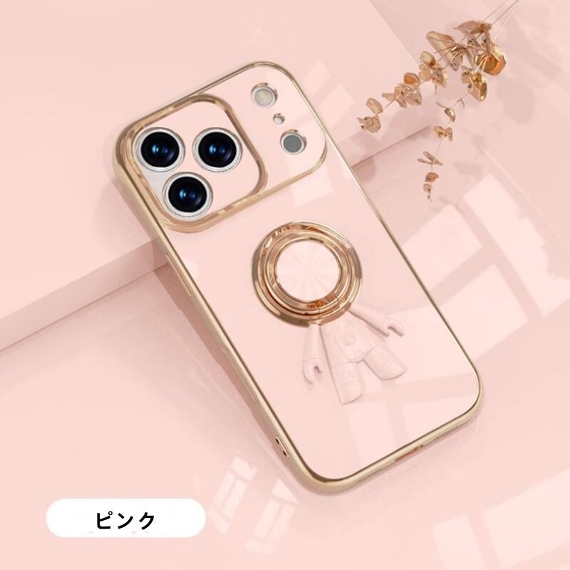 iPhone17 ケース 6.3インチ対応 宇宙飛行士 指リング付き スタンド機能 電镀 光沢 耐衝撃 保護カバー スマホケース おしゃれ