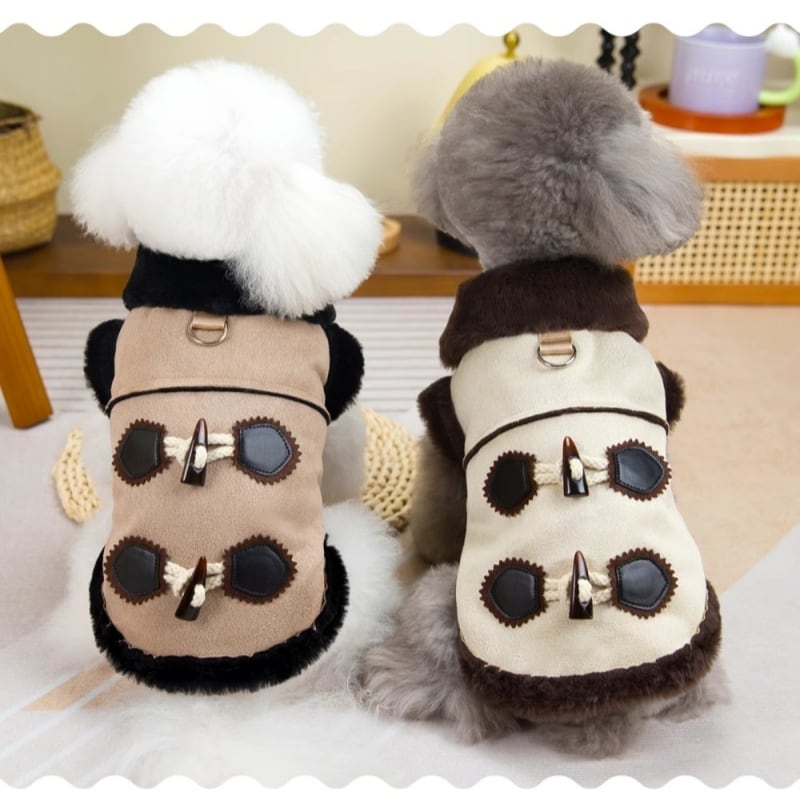 この「秋冬用ペット服 ジャケット」は、愛らしいデザインと実用性を兼ね備えた防寒アイテムです。スエード素材に裏起毛が施されており、肌触りも良く、寒い季節のお散歩も快適に過ごせます。また、愛犬や愛猫にぴったりの可愛い見た目で、周囲の注目を集めること間違いなし!暖かい厚手の加絨仕様で、防寒対策もバッチリです。この冬は、可愛いペットのために特別なジャケットをお選びください。ぜひ、その魅力を実感してみてください!