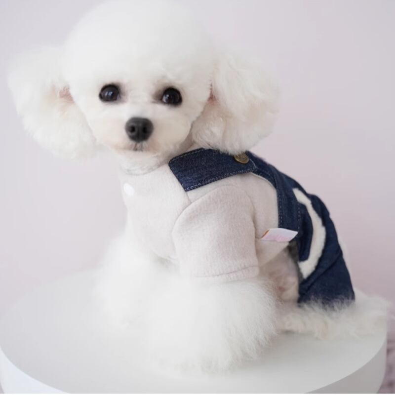 ペット用秋冬服 犬猫兼用 デニムつなぎ 厚手裏起毛 サロペット フック付き リード対応 四足前開き 暖かい デニムジャケット付き トイプードル服 防寒服 ペットウェア リード対応 | nextcase