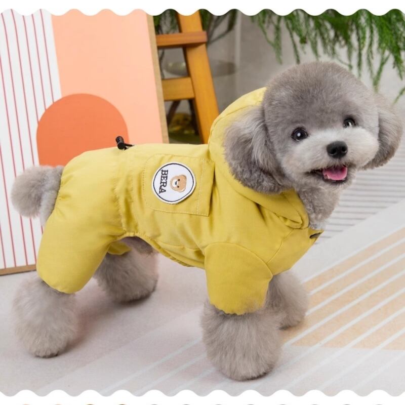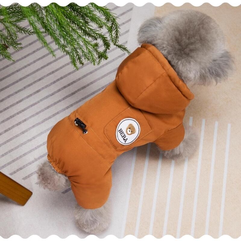 犬服 秋冬用ドッグウェア 四足スキーウェア 防風オールインワン 厚手保温綿入り 小型犬 中型犬 散歩 お出かけ 防寒