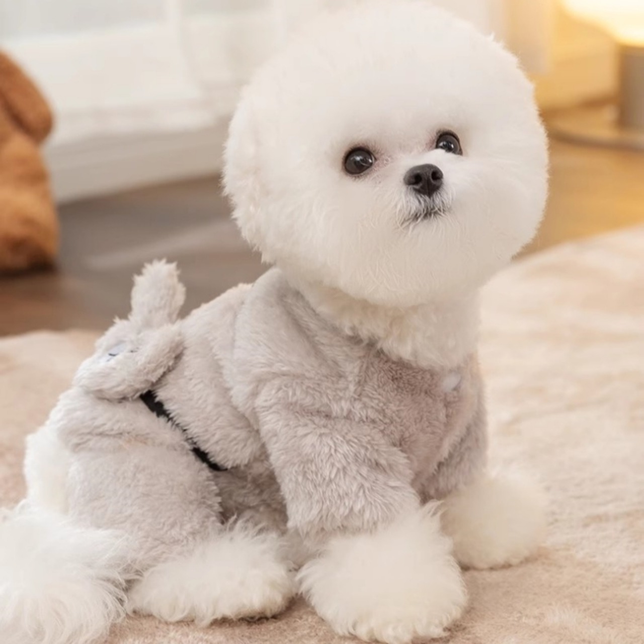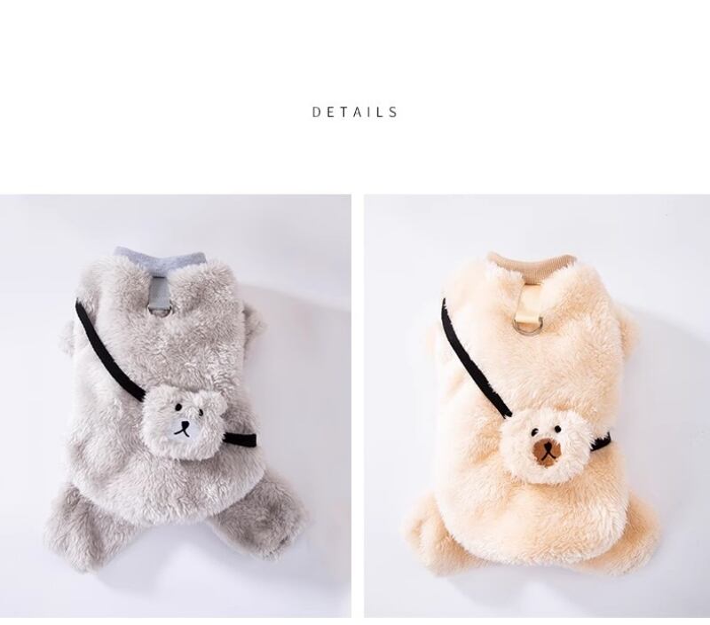 犬服 猫服 小熊風 つなぎ 四足 前開き リード対応 ふわふわ 防寒 秋冬 ペットウェア!毛布のように暖かい可愛いドッグウェアロンパースです!寒くなってきた季節、愛犬や愛猫をしっかりと守ります!前開きデザインで着脱もスムーズ、リードにもしっかりと対応!小型犬や猫ちゃんにぴったりなスタイルで、ちょっとしたお出かけにも最適です!可愛い小熊のデザインで、周りの視線を集めること間違いなしです!送料無料でお届けいたします!