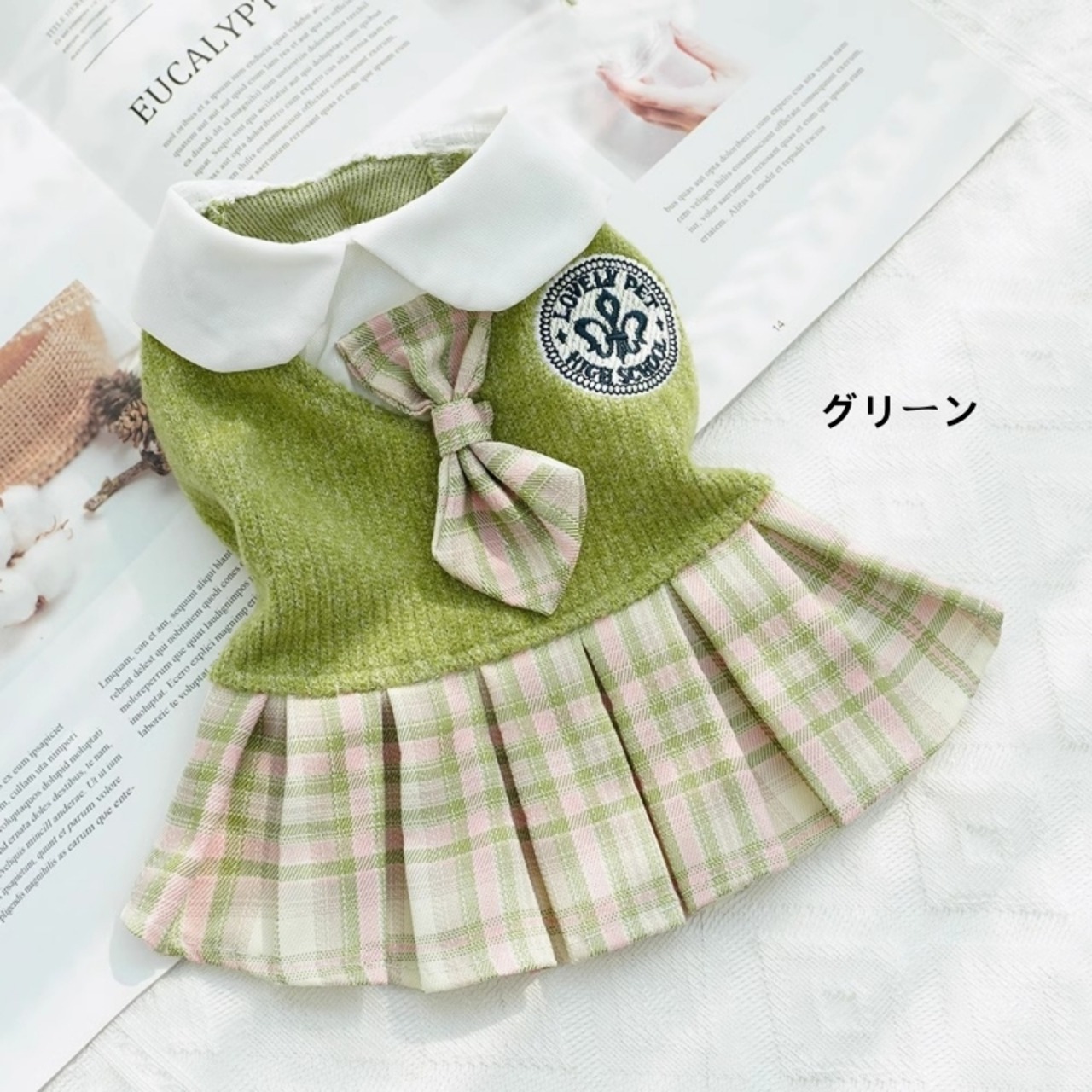 小型犬服 猫服 冬用 ワンピース チェック柄 リボン ネクタイ付き おしゃれ 防寒 ドッグウェア ペットウェア 秋冬 お散歩 お出かけ カジュアル かわいい 人気