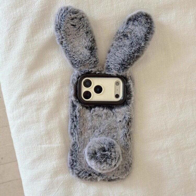 送料無料 iPhone17 ケース アイフォン17 ケース 6.3インチ 対応 ふわふわ うさぎファー 秋冬用 保温 可愛い ソフトケース レンズ保護 スタンド機能付き もこもこ 全面保護 TPU