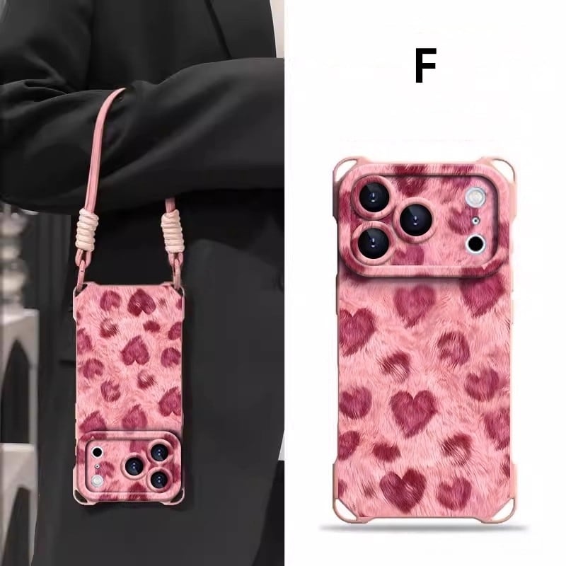 iPhone17 ケース アイフォン17 ケース 6.3インチ 対応 愛ハート×レオパード柄 おしゃれ 高級感 全面保護 耐衝撃 ソフトケース ストラップ付き 新作 TPU