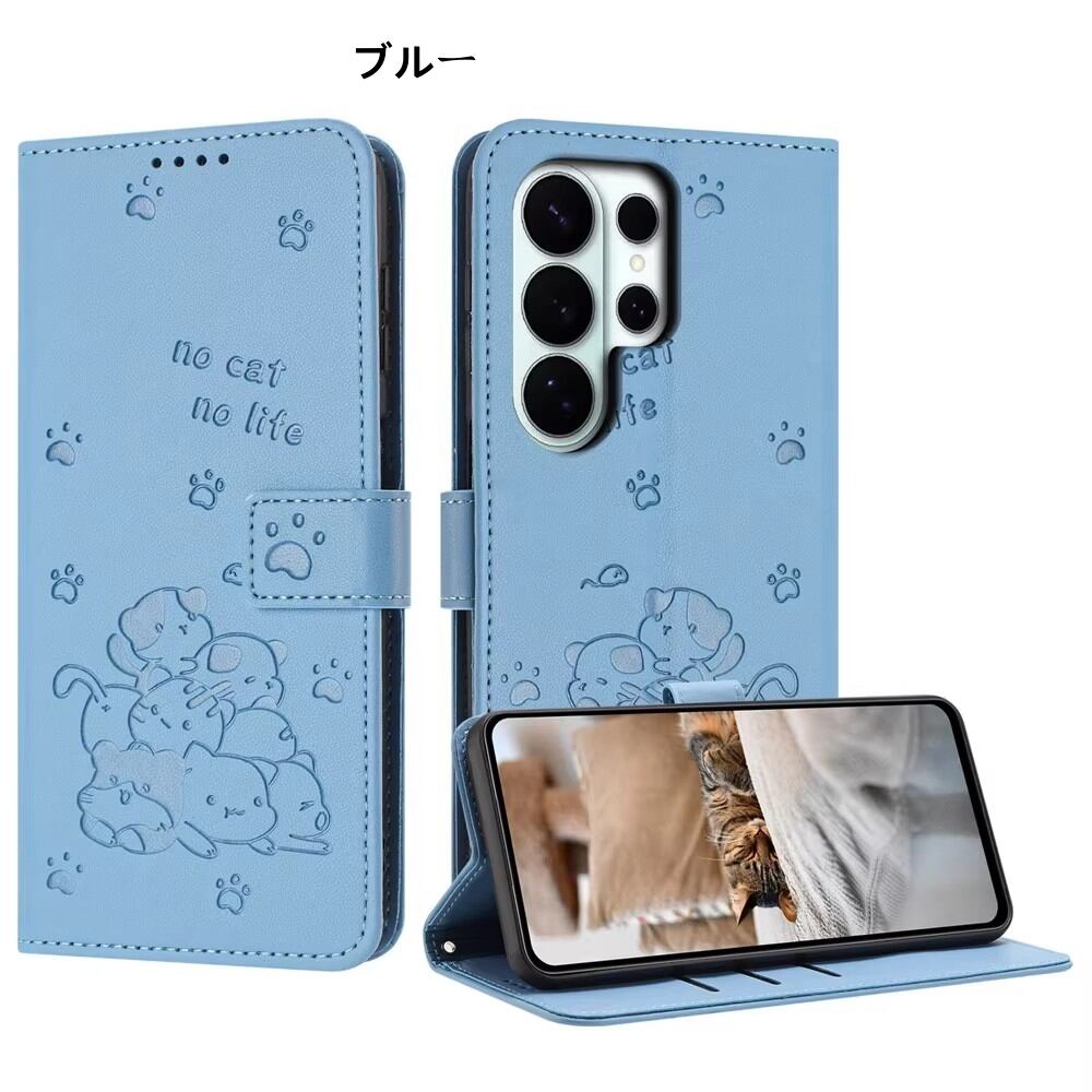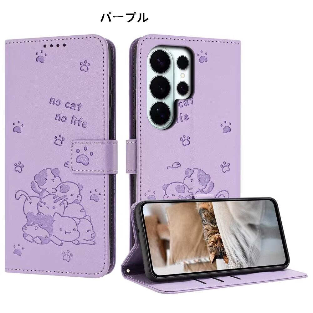 Galaxy S26 ケース カートゥーン ネコ型押し レザー フリップケース カード収納・スタンド機能付き 耐衝撃保護カバー ギャラクシーS26 スマホケース 6.3インチ 送料無料