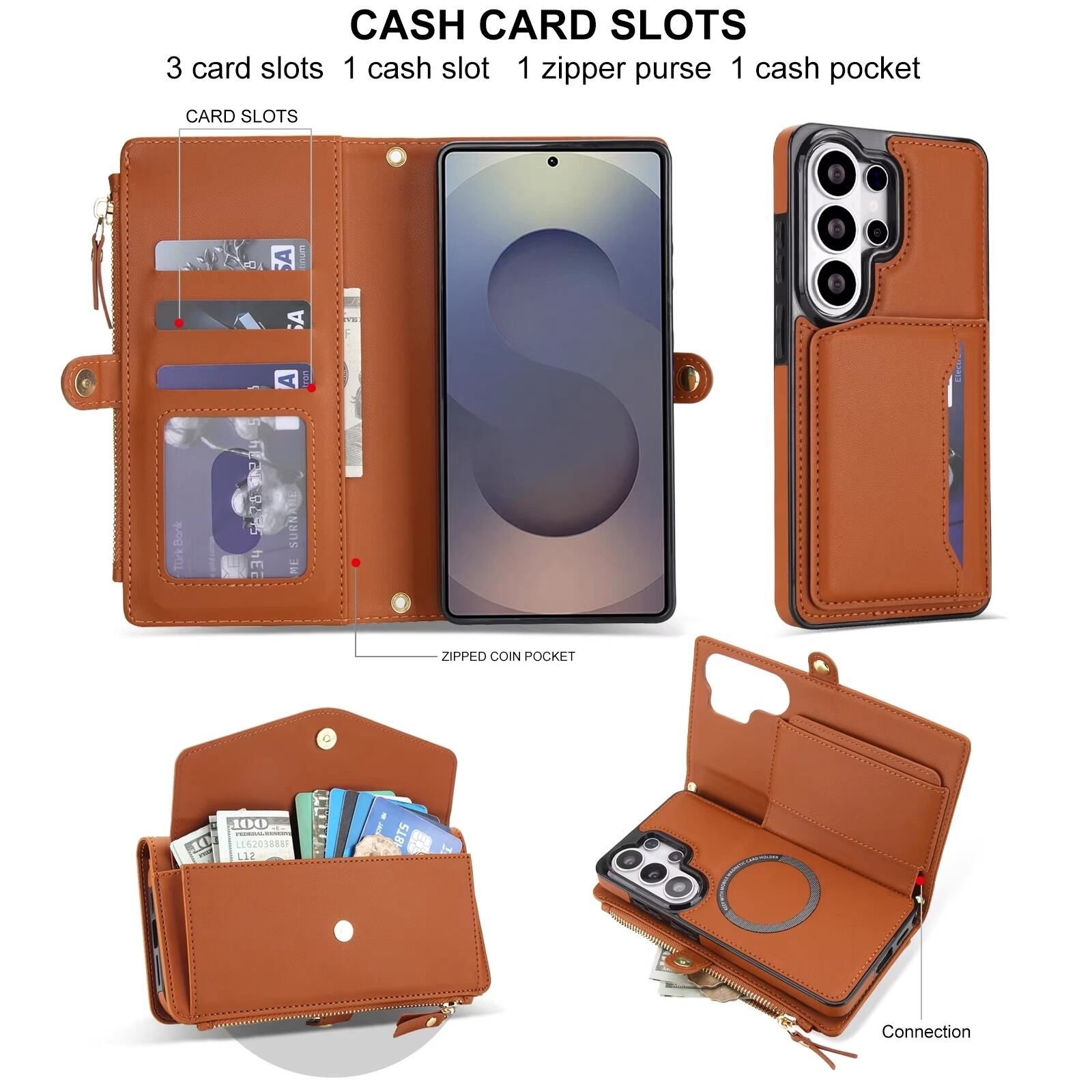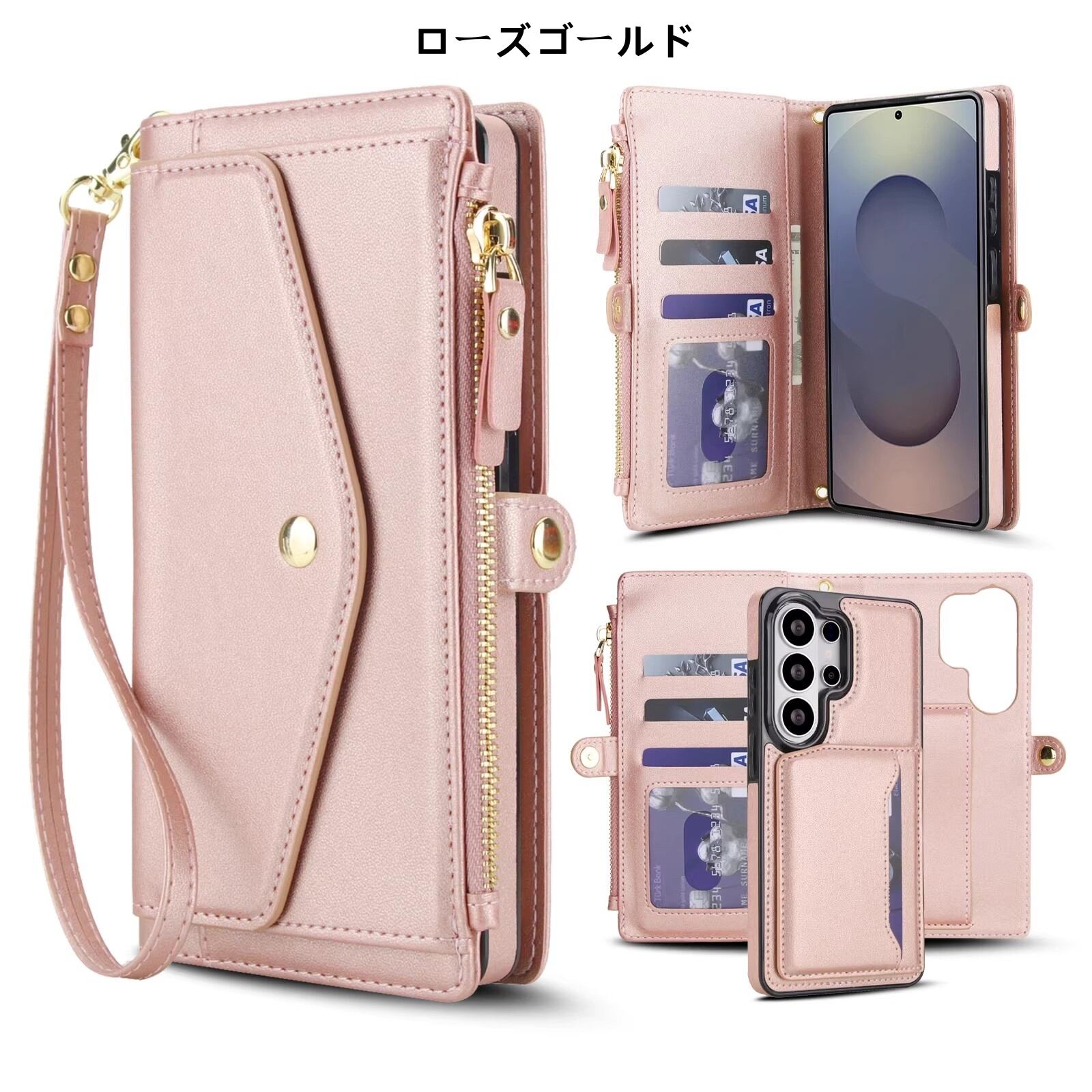 Galaxy S26 ケース 多機能 マグネット分離式 レザー フリップケース ライプジップ付き 腕紐付き 耐衝撃保護カバー ギャラクシーS26 スマホケース 6.3インチ 送料無料