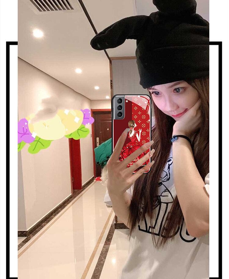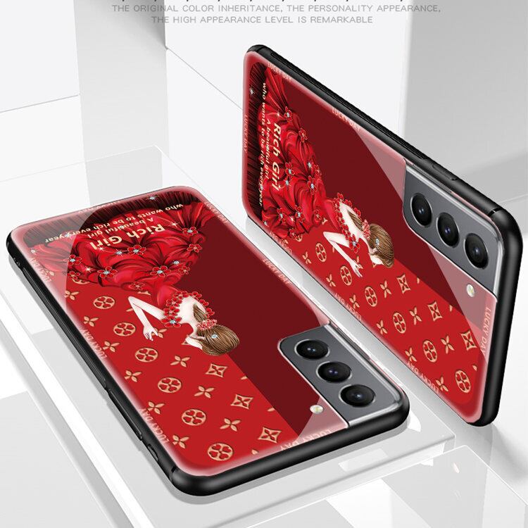 Galaxy S26ケース ギャラクシー S26ケース サンスム 6.3インチ スマホケース ガラス背面カバー TPUソフトケース 女の子 おしゃれ レッド
