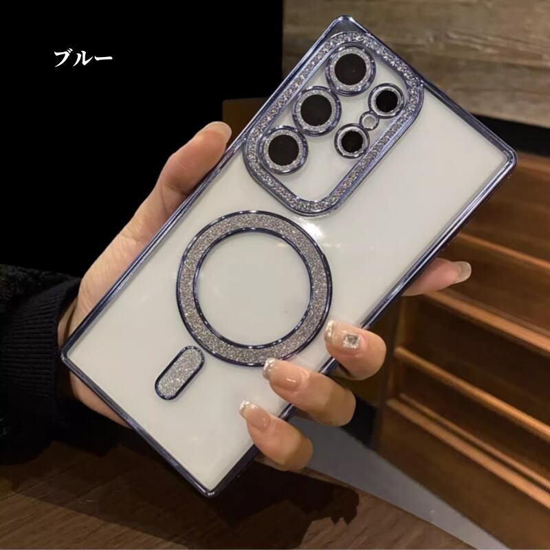 Galaxy S26+ ケース キラキラ ラインストーン MagSafe対応 磁気吸着 クリアケース 電気メッキ カメラ保護 耐衝撃 薄型 おしゃれ レディース ギャラクシーS26+ スマホケース 6.7インチ