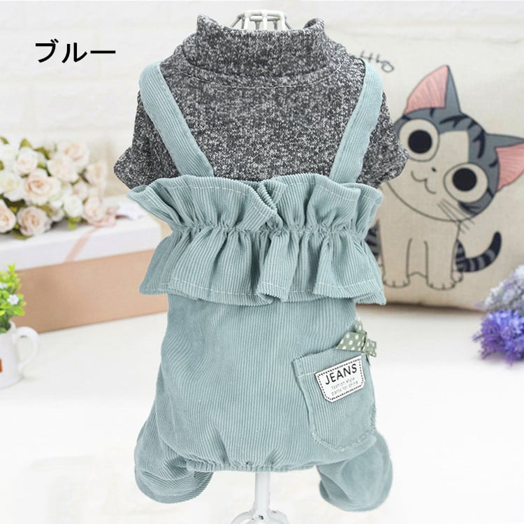 犬服 秋 冬 防寒 デニムオールインワン 小型犬 ドッグウエア ワンちゃん服 ペットウェア つなぎ カバーオール オーバーオール プリント フード付き スナップボタン様式 裏ボア 両足ポケット付き ロンパース カジュアル お洒落 お散歩 トレーナー 秋冬物 おしゃれペット 犬洋服 ペット用品 コスチューム