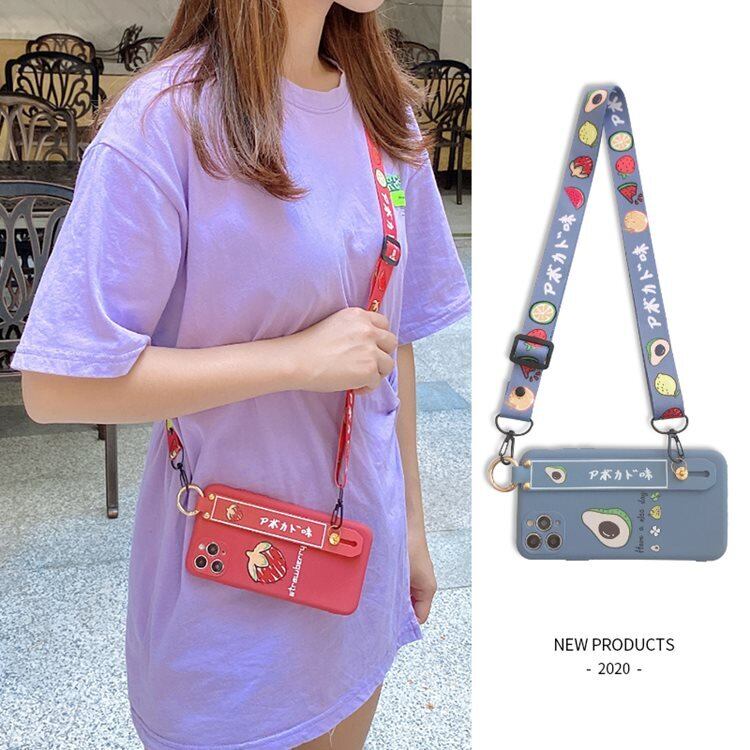 送料無料!iPhone 12 Miniケース アイフォン12 ミニ ケース Apple 5.4インチ スマホケース 保護カバー 背面カバー シリコン ストラップ付き タンドタイプ いちご&アボカド かわいい | nextcase