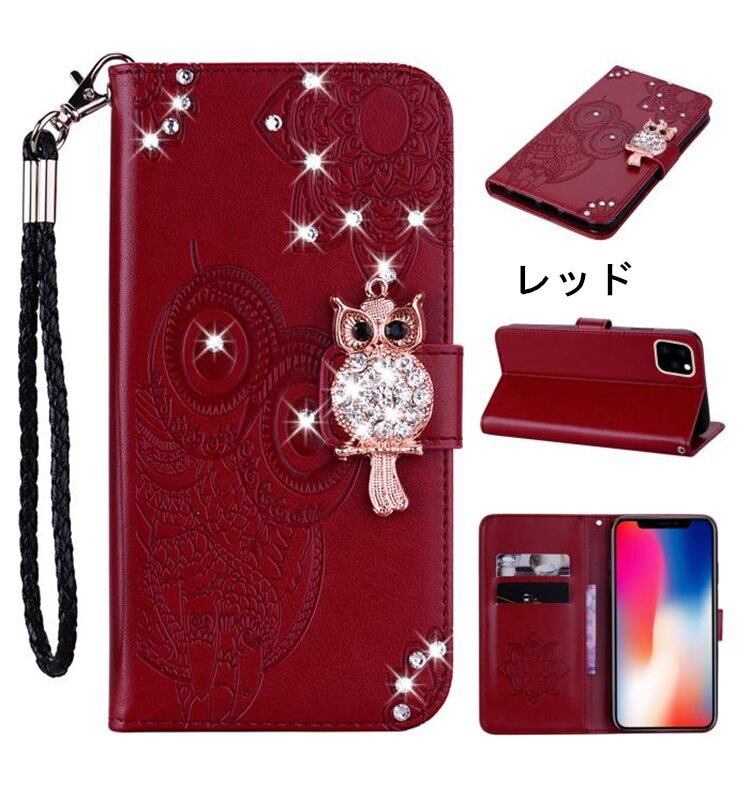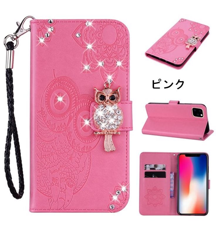 送料無料!iPhone 12 Miniケース アイフォン12 ミニ ケース Apple 5.4インチ スマホケース 保護カバー 手帳型 ストーン きらきら フクロウ カード収納 ストラップ付き | nextcase