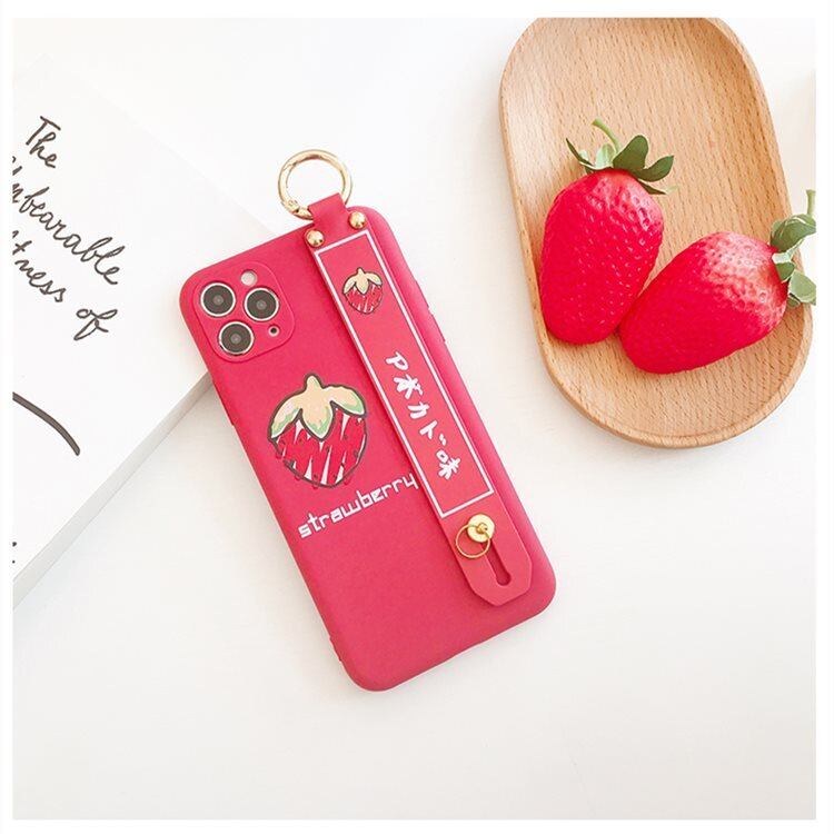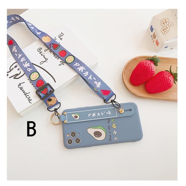 送料無料!iPhone 12 ケース iPhone12 カバー アイフォン12 ケース Apple 6.1インチ スマホケース 保護カバー 背面カバー シリコン ストラップ付き タンドタイプ いちご&アボカド かわいい | nextcase