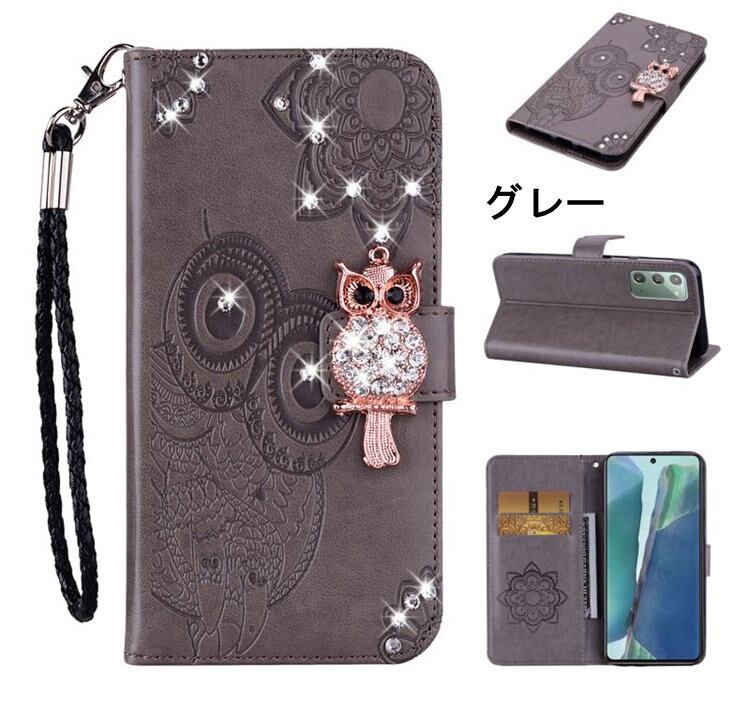 送料無料 Samsung Galaxy S21 ケース ギャラクシー S21 ケース サンスム 6.2インチ スマホケース 手帳型 カード収納 ストーン きらきら フクロウ ストラップ付き | nextcase