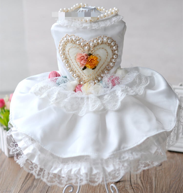 送料無料!犬の服 ワンピース パール&はな飾り LOVE 可愛いペット ウエディングドレス ビッグ ペットグッズ ドッグウェア 春 夏 ペット服 ワンちゃん服 めちゃめちゃ可愛いです | nextcase