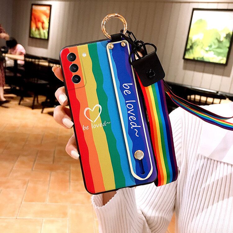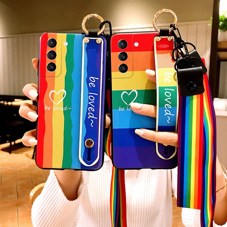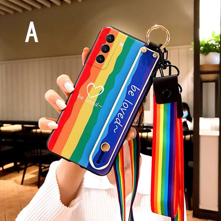 送料無料 Samsung Galaxy S21 ケース ギャラクシー S21 ケース サンスム 6.2インチ スマホケース 背面カバー TPUソフトケース スタンドタイプ シリコン 虹アクセサリー ストラップ付き | nextcase