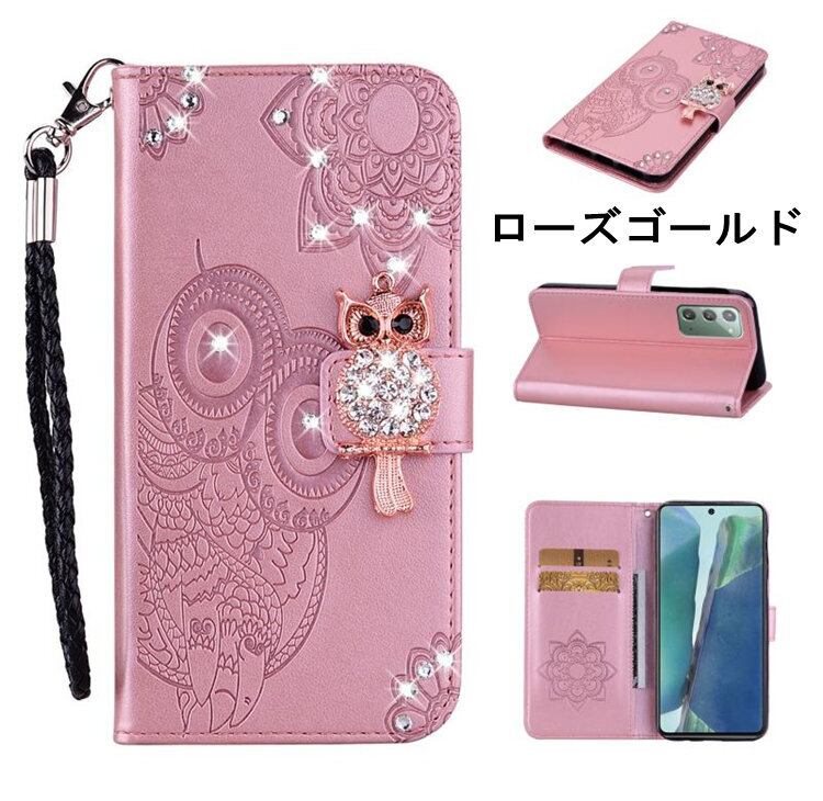 送料無料 Samsung Galaxy Note20 Ultra5G ケース ギャラクシー ノート20 Ultra5Gケース au SCG06 docomo SC-53A スマホケース 保護カバー 手帳型 カード収納 ストーン きらきら フクロウ ストラップ付き