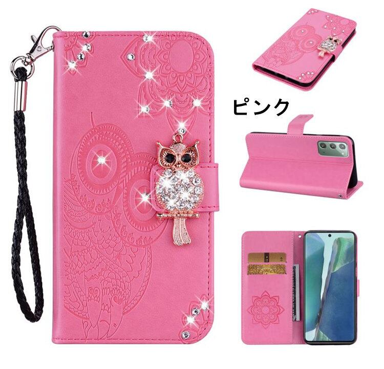 送料無料 Samsung Galaxy Note20 ケース 6.7インチ ギャラクシー ノート20 ケース スマホケース 保護カバー 手帳型 カード収納 ストーン きらきら フクロウ ストラップ付き | nextcase