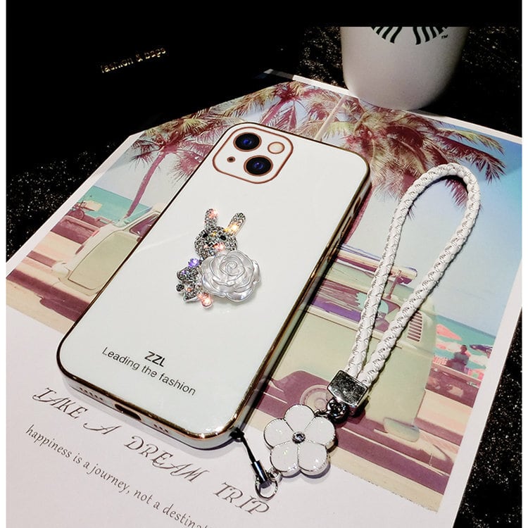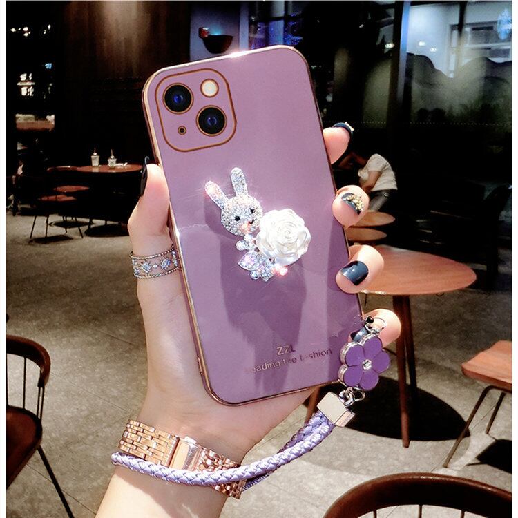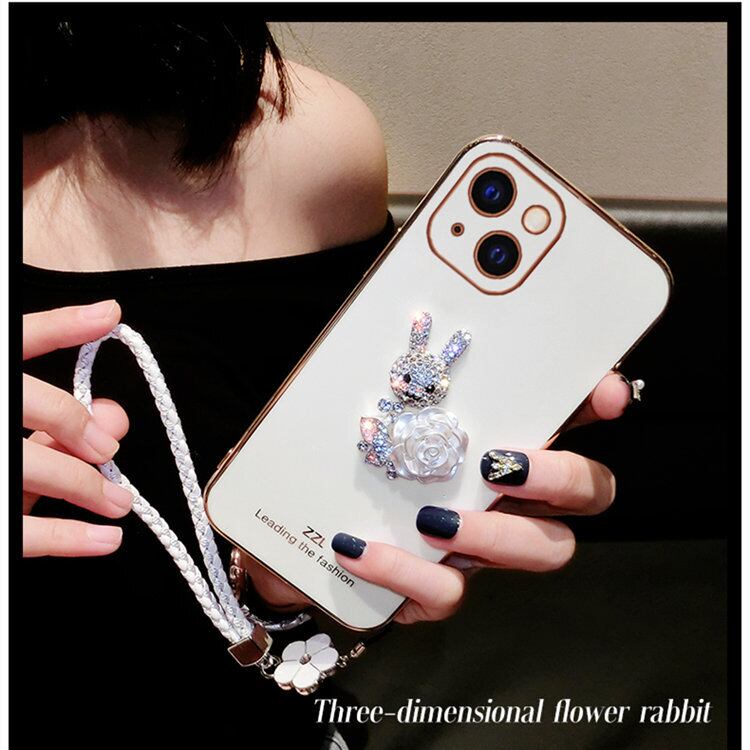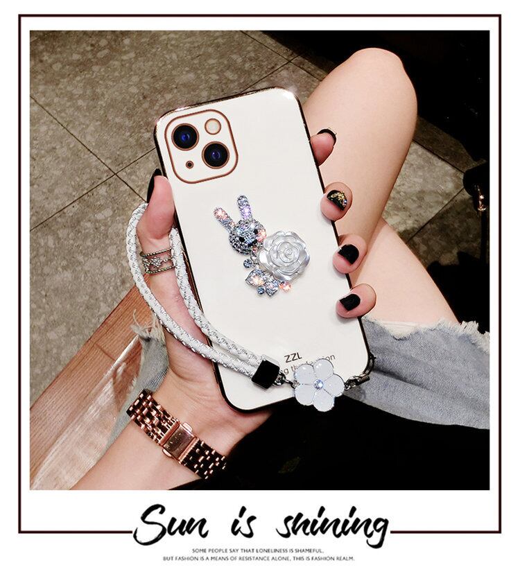 送料無料!iPhone 13 ケース iPhone13 カバー アイフォン13 ケース Apple 6.1インチ スマホケース 保護カバー 背面カバー ウサギ ストーン きらきら ストラップ付き おしゃれ | nextcase