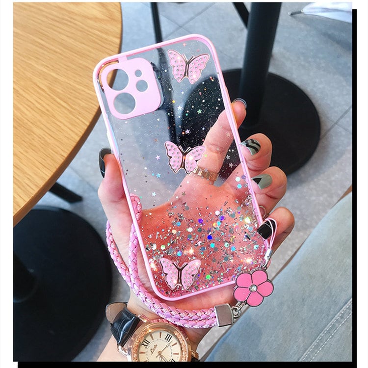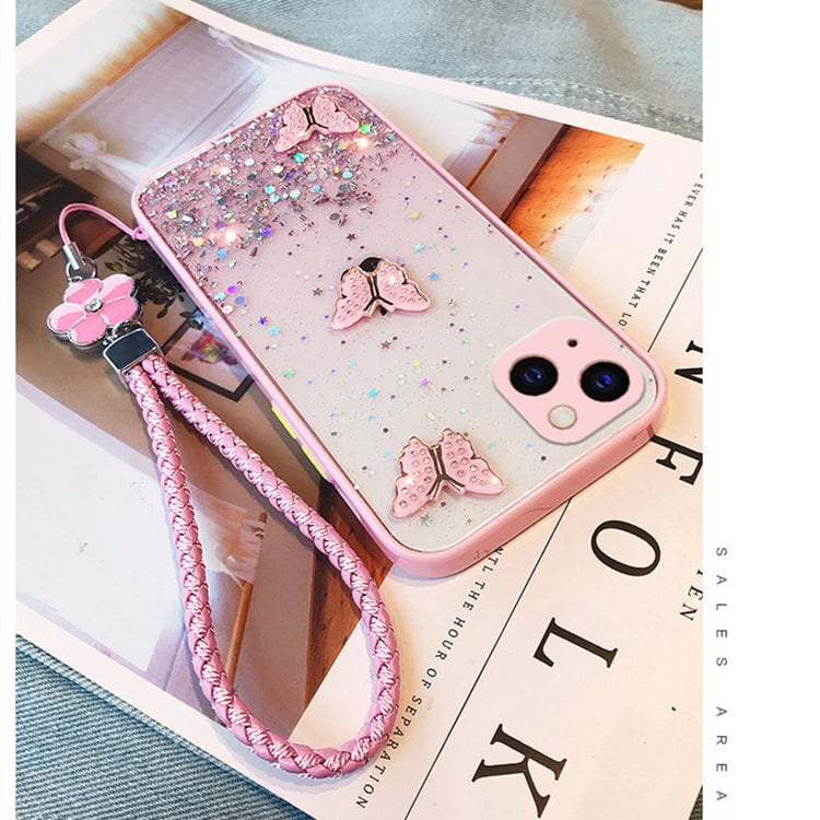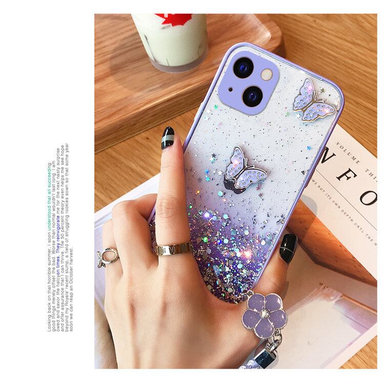 送料無料!iPhone 13 Pro ケース iPhone13 Proカバー アイフォン13 プロケース Apple 6.1インチ スマホケース 保護カバー 背面カバー 透明ケース きらきら ちょう ストラップ付き かわいい | nextcase