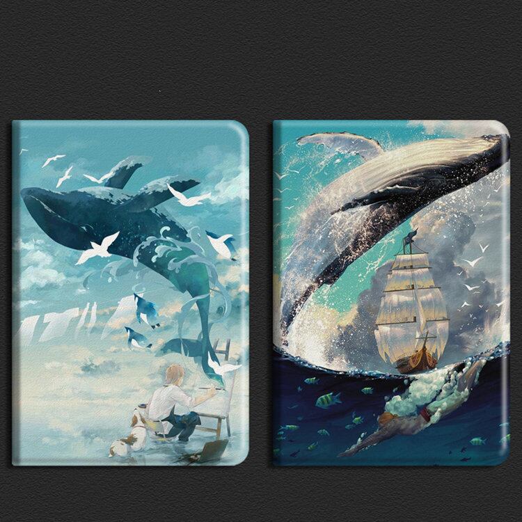 送料無料 ガラスフィルム付き iPad 10.2インチケース 第9世代 2021年秋モデル発売 アイパッド9 カバー ipad9 タブレットPC 手帳型 オードスリーブ機能 段階調整 スタンドタイプ 鯨 | nextcase