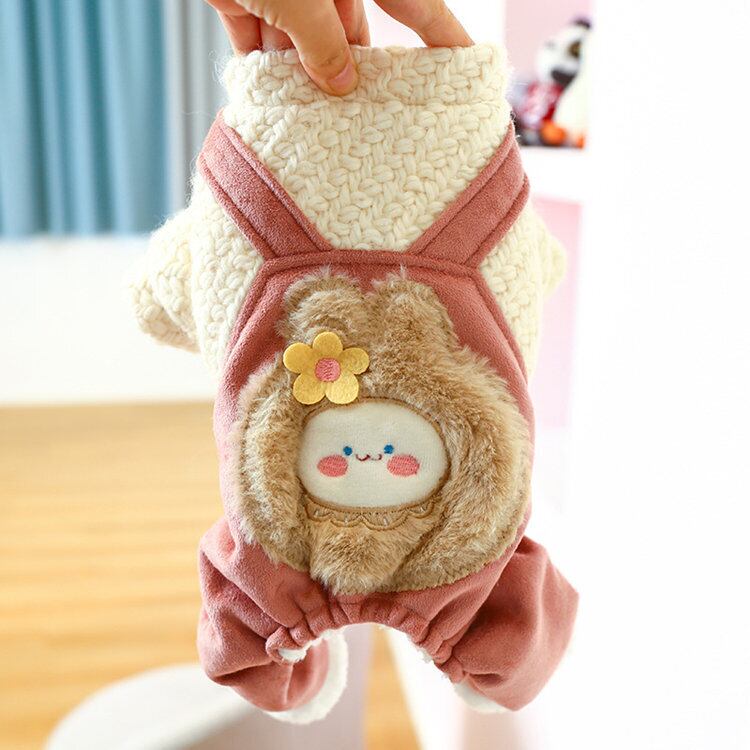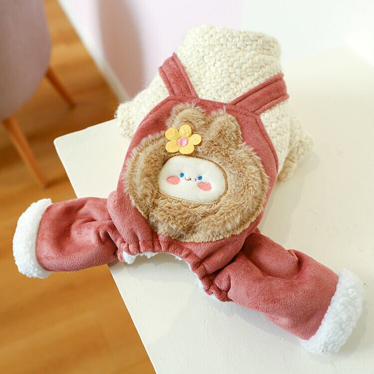 犬服 秋 冬 防寒 デニムオールインワン 小型犬 ドッグウエア ワンちゃん服 ペットウェア つなぎ カバーオール オーバーオール プリント フード付き スナップボタン様式 裏ボア 両足ポケット付き ロンパース カジュアル お洒落 お散歩 トレーナー 秋冬物 おしゃれペット 犬洋服 ペット用品 コスチューム