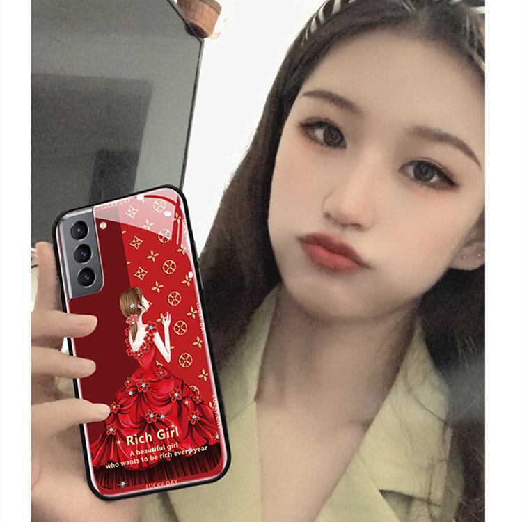 Samsung Galaxy S21 Ultraケース ギャラクシー S21 Ultraケース サンスム 6.8インチ SC-52B ガラス背面カバー TPUソフトケース 女の子 おしゃれ レッド | nextcase