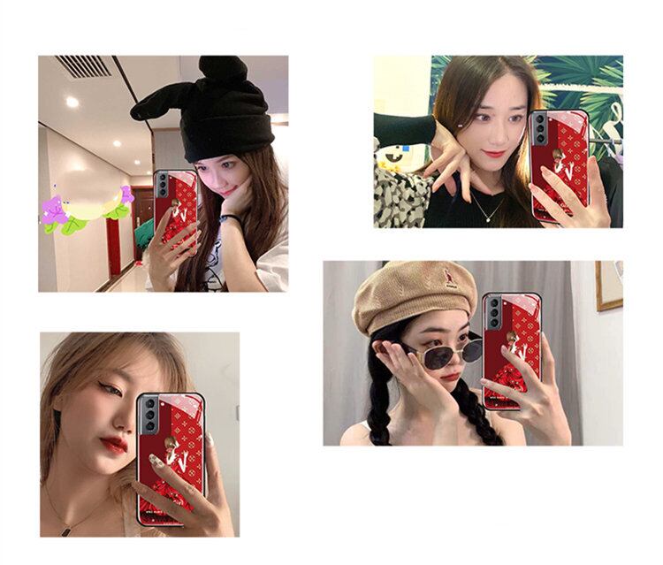 送料無料 Samsung Galaxy S22 Ultraケース ギャラクシー S22 Ultraケース サンスム 6.8インチ スマホケース ガラス背面カバー TPUソフトケース 女の子 おしゃれ レッド | nextcase