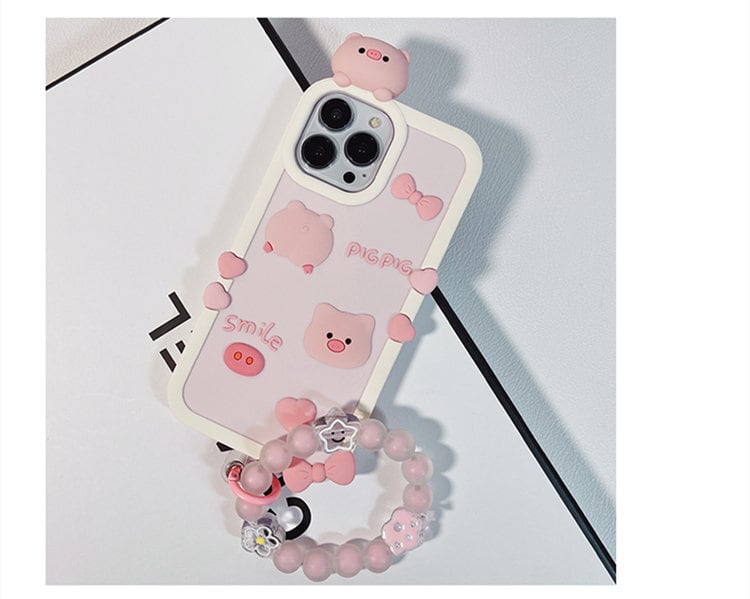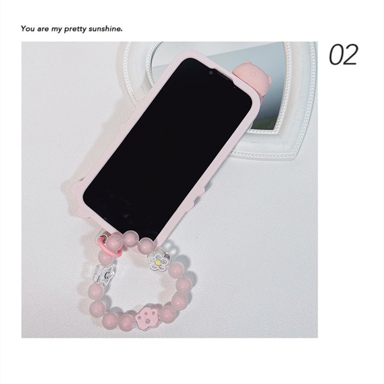 送料無料!iPhone 14 Pro ケース アイフォン14 プロ ケース Apple 6.1インチ スマホケース 保護カバー 背面カバー おしゃれ シリコンカバー 耐衝撃 ブレスレット付き ピンク pig | nextcase