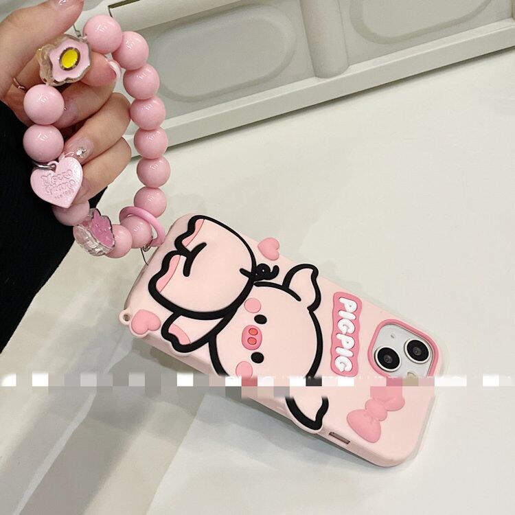 送料無料!iPhone 14 Plusケース アイフォン14 プラス ケース Apple 6.7インチ スマホケース 保護カバー 背面カバー シリコン ソフトケース チェーン付き 超可愛 PIG ピンク | nextcase