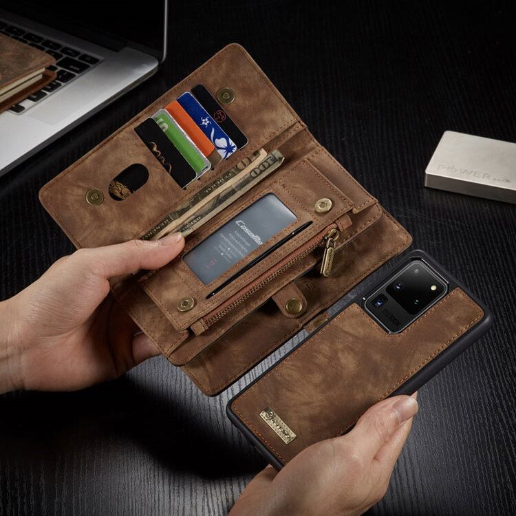 Galaxy S23 Ultra専用のスマホケースです。6.8インチの大画面にぴったりのフィット感で、取り外せる多数のカードポケットによって、手帳型としても最適です。また、内部には小物やお札を収納するためのポケットもあり、使い勝手がよく、便利な一品となっています。