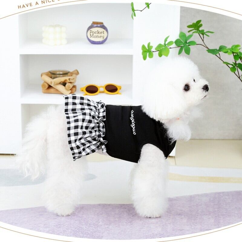 心地よい風を感じさせる涼しいチェック柄の犬用Tシャツが登場!春夏のお出かけやお散歩、お家でのリラックスタイムにぴったりな一枚です。