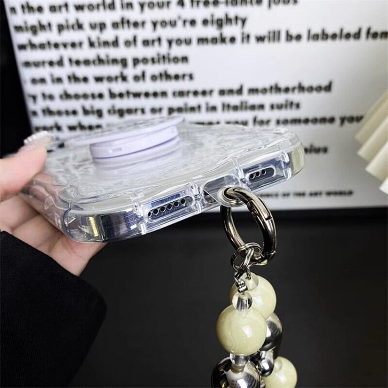 iPhone 15 Proケースは、背面カバーにLOVEスタンドが付いています。スマートフォンを立てかける際に便利で、画面を見やすくすることができます。さらに、ブレスレットを付けることができるため、おしゃれさもアップします。