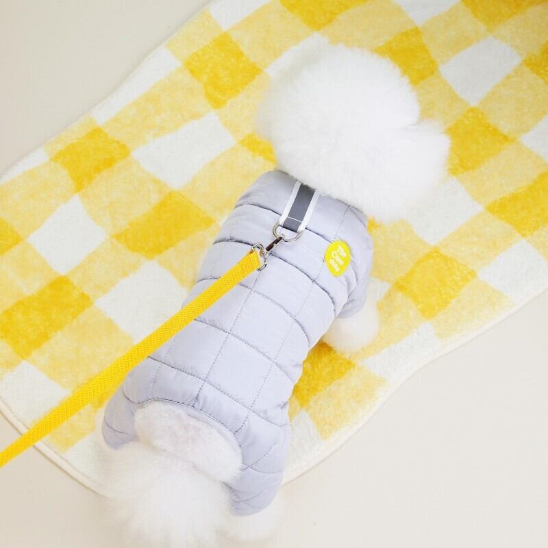 温かい秋冬のお出かけに最適な犬用サロペット。厚みのある綿素材で作られた裏地起毛のつなぎは、寒さから愛犬をしっかりと守ります。防寒効果を高めるため、加絨加工を施しています。