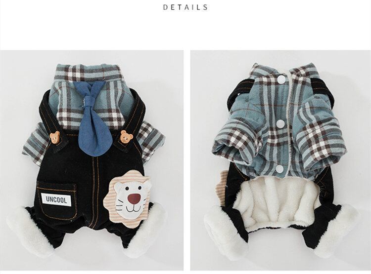 犬服 秋 冬 防寒 デニムオールインワン 小型犬 ドッグウエア ワンちゃん服 ペットウェア つなぎ カバーオール オーバーオール プリント フード付き スナップボタン様式 裏ボア 両足ポケット付き ロンパース カジュアル お洒落 お散歩 トレーナー 秋冬物 おしゃれペット 犬洋服 ペット用品 コスチューム