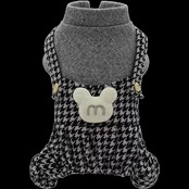 大人気の犬の服、ロンパースタイプのサロペットです!秋冬にピッタリのニットウェアが可愛らしいお洋服です。四足前開きなので、お洋服の着脱も簡単で、お散歩や外出時にも便利です。チャック柄がアクセントで、とってもおしゃれ!愛犬のファッションにアクティブ感を加えてくれますよ。