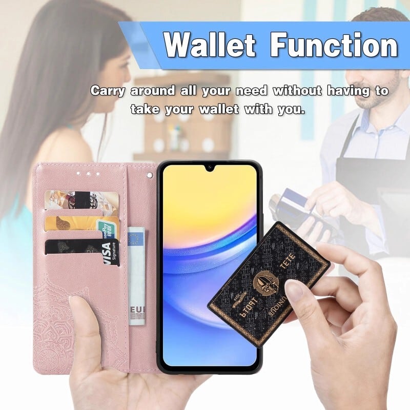 高品質なレザー手帳型ケースで、スマートフォンをしっかりと保護します。Samsung Galaxy S24に対応しており、6.1インチの大画面を楽しめます。マンダラ模様のデザインは、エレガントで洗練された印象を与えます。