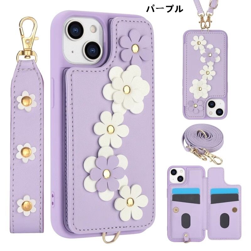 送料無料 iPhone 16 ProMax ケース アイフォン16 プロ マックス ケース スマホケース 保護カバー 6.9インチ レディース フェイクレザー ショルダーバッグ チェーン付き スタンドタイプ 花 おしゃれ | nextcase