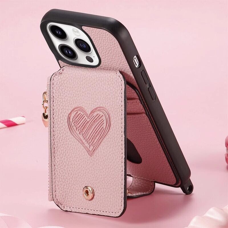 送料無料 iPhone 16 ProMax ケース アイフォン16 プロ マックス ケース スマホケース 保護カバー 6.9インチ スマートフォンカバー カード収納 ショルダーバッグカバー ファスナー LOVE ストラップ付き | nextcase