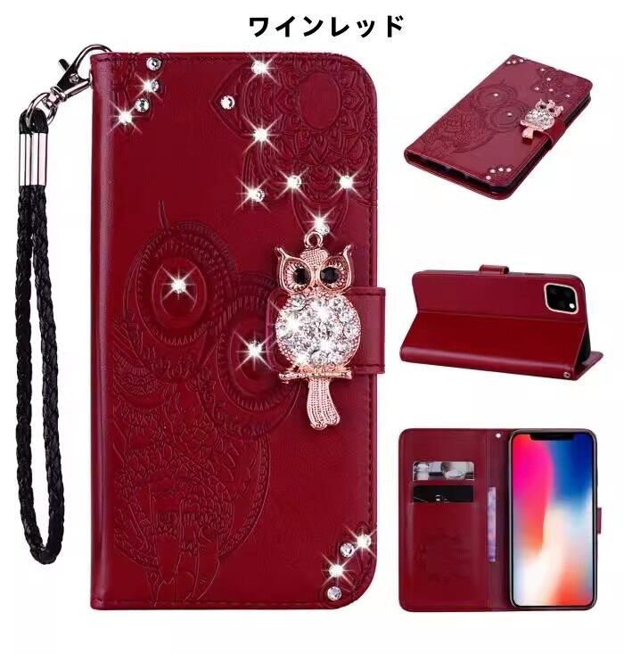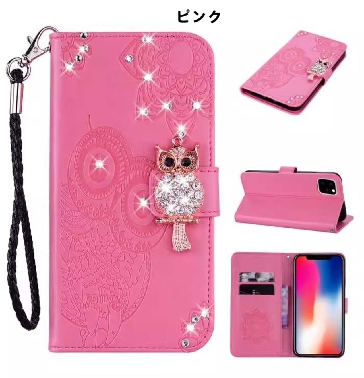 送料無料 iPhone 16 ProMax ケース アイフォン16 プロ マックス ケース スマホケース 保護カバー 6.9インチ 手帳型 ストーン きらきら フクロウ カード収納 ストラップ付き | nextcase