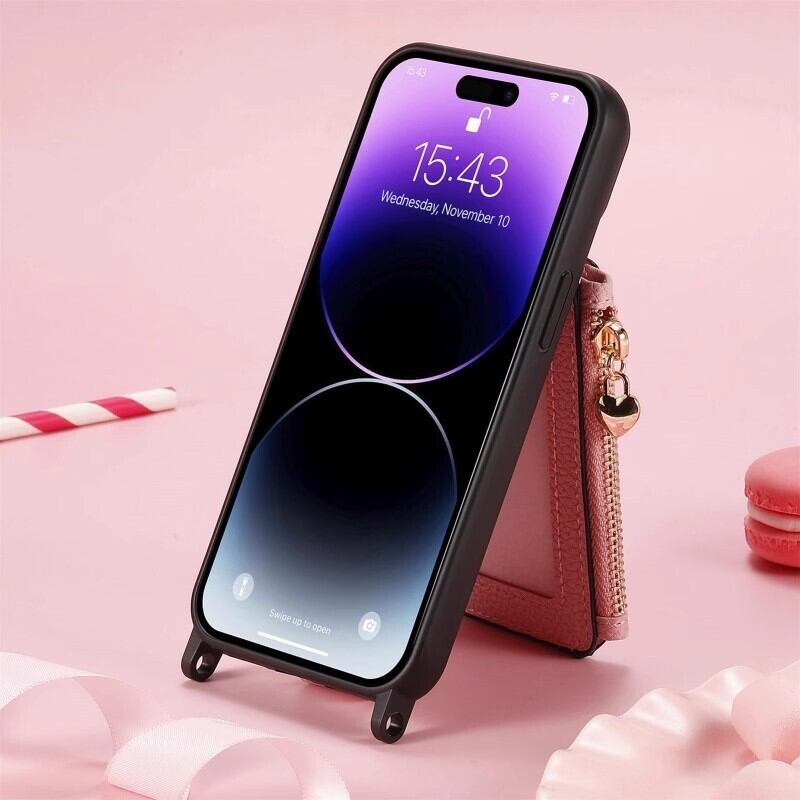 iPhone 16 ケース アイフォン16 ケース スマホケース 保護カバー 6.1インチ スマートフォンカバー カード収納 ショルダーバッグカバー ファスナー LOVE ストラップ付き | nextcase